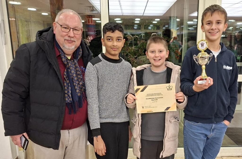 Von den drei teilnehmenden Gymnasien aus Bayreuth konnten in der WK IV/RS das MWG den Titel „Oberfränkischer Meister“ souverän erringen. In der WK III starteten diesmal das GMG und das WWG aus der Wagnerstadt Bayreuth. Dabei gewann das GMG-Team, ab Runde 4 nur zu dritt spielend, überraschend den Vizemeister-Pokal! Unter Wert kämpfte das Team des WWG und erreichte nach neun Spielrunden nur den vorletzten Platz.