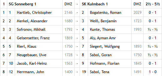 Der Westen: Michelau oder Nordhalben? Das ist die Meisterschaftsfrage in der Bezirksliga West. Die klaren Vorteile liegen bei der Mannschaft aus dem Landkreis Lichtenfels: ein Mannschaftspunkt und 6,5 Brettpunkte Vorsprung. Das „Rehau des Westens“ ist Concordia Strullendorf, die in Duellen gegen die beiden Führenden die Meisterschaft entscheiden kann. Gegen die Strullendorfer holte Tettau einen Punkt, der noch Gold wert sein könnte. Höchstadt 2 rutschte durch die zweite Niederlage in Folge weiter ab. Die West-Liga ist und bleibt eine Zwei-Klassen-Gesellschaft – mit vier Spitzenmannschaften und sechs Abstiegsaspiranten. Einer aus diesem Sextett, Hollfeld/Memmelsdorf 2, kann wohl schon für die A-Klasse Bamberg 2026/27 planen.